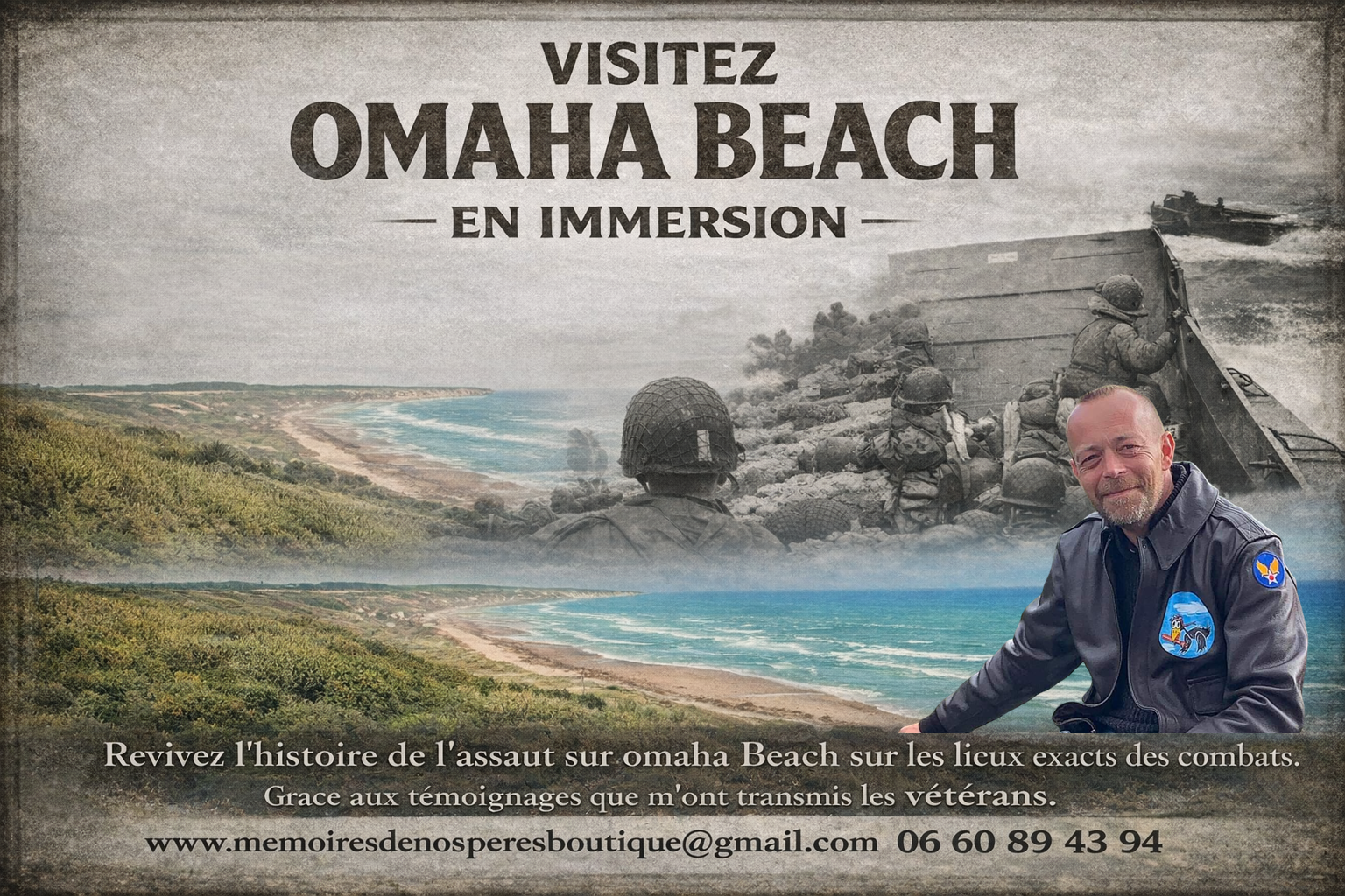 Guide indépendant .Mémoires de nos pères vous propose de découvrir Omaha Beach. Visite sous forme de randonnée. Réservez votre visite dès aujourd'hui ! Que vous soyez passionné d'histoire ou simplement curieux, mes visites s'adaptent à tous les niveaux d'intérêt. Offrez-vous une expérience enrichissante et émouvante en famille ou entre amis.